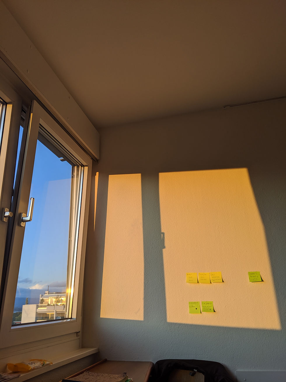 Another thing I did which was so important for me was post-it notes with self affirmations. Like, when I first got to the accommodation, the walls were empty, it was just very bare and everything. So basically, I would like get these post-it notes and write like self affirmations or just like statements or things that I'm grateful for, and just stick them around, and use them to remind myself constantly, which was, for me, it was really, really useful. And it was kind of like a repetition method in a sense, where I would like to look at it and be reminded of why I'm even there ... like my intentions and what I want to get out of this experience. And just, it would remind me to go out and make the most out of every day. I think checking your intentions before you do anything is so good.
